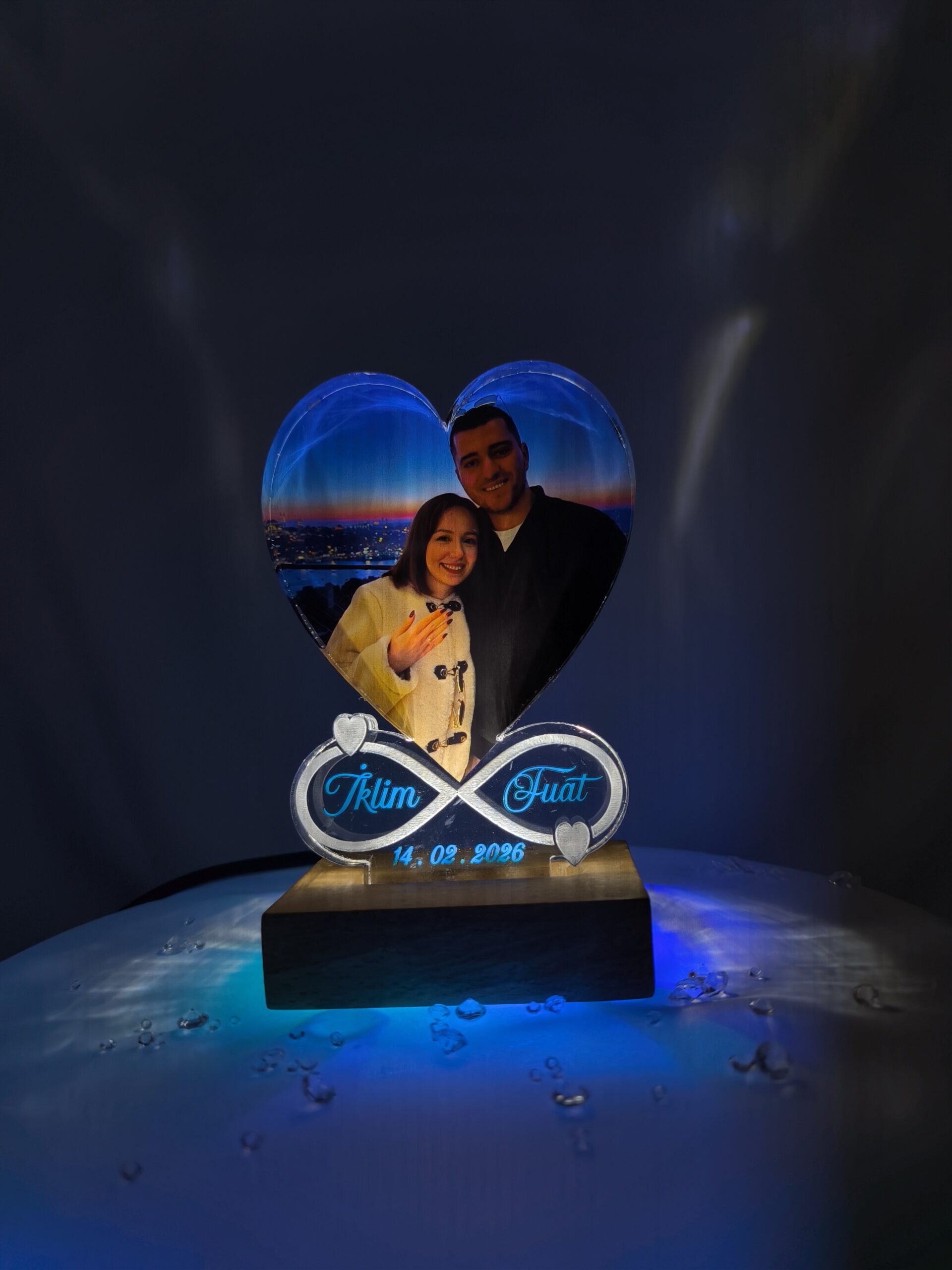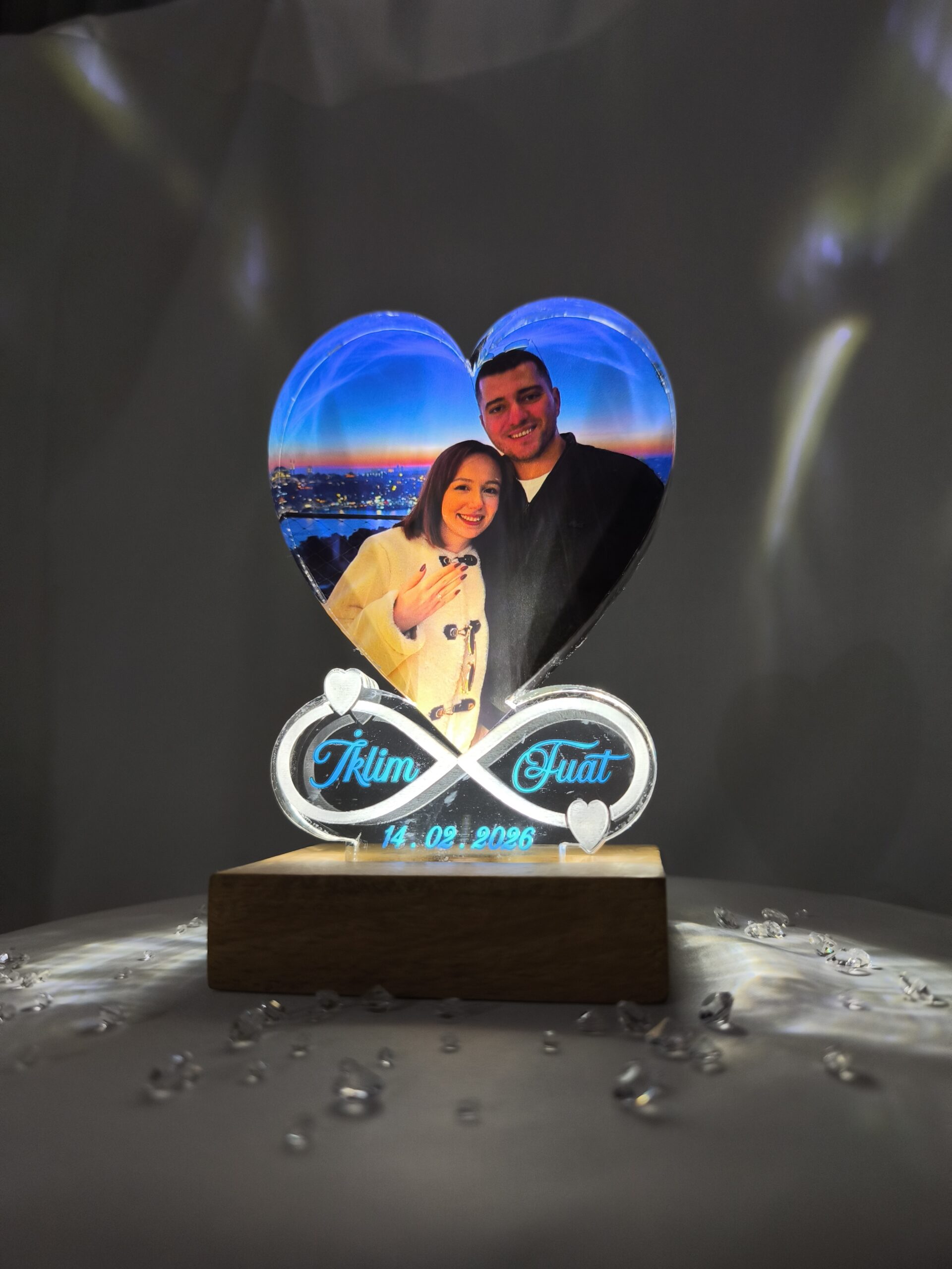 Kişiye Özel Sonsuzluk Pleksi Biblo – LED Işıklı Masaüstü Fotoğraf